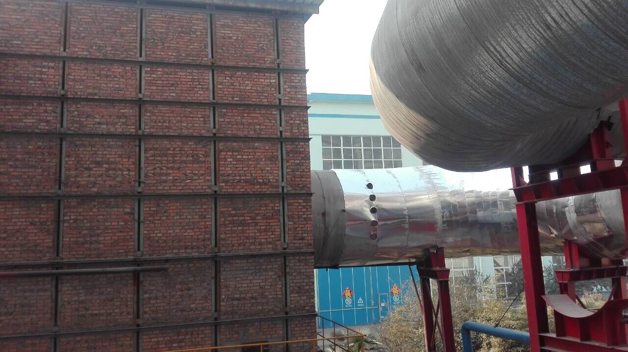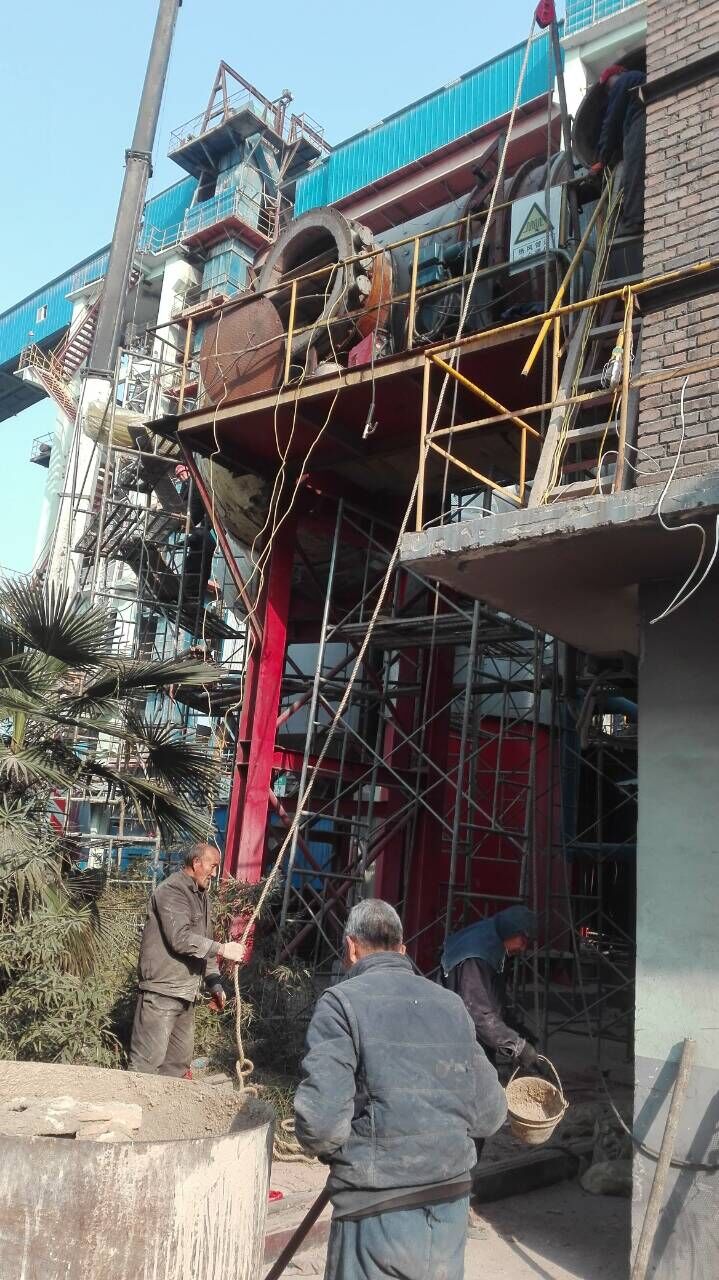在新鄉(xiāng)長城礦粉有限公司維修一臺沸騰爐,熱風(fēng)管澆注保溫,立磨打澆注料